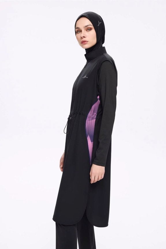 HAŞEMA KOL ALTI VE SIRTI DESENLİ 5 PARÇA TAM TESETTÜR MAYO TAKIMI